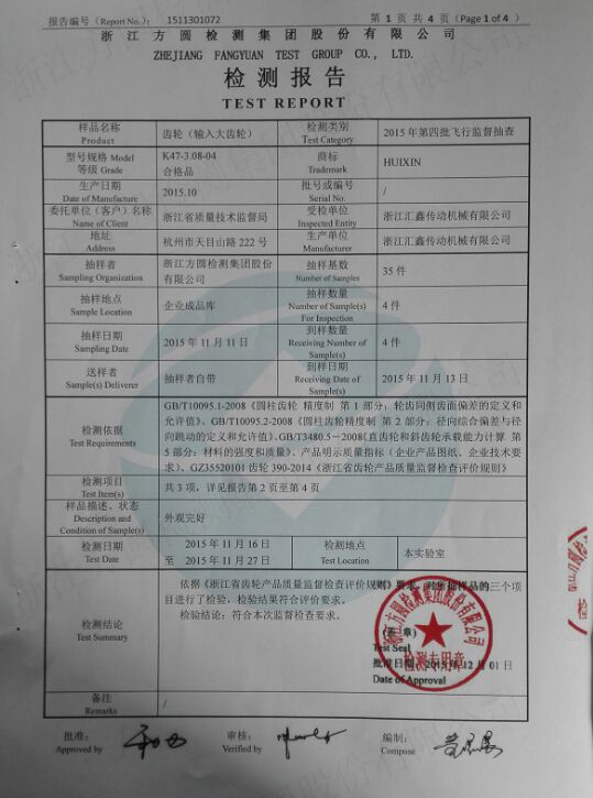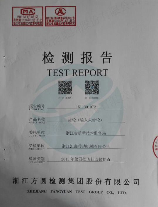 浙江匯鑫傳動機械有限公司擁有著完善的檢測設備、先進的生產工藝、專業的制造技術、完善的質量管理體系、具有雄厚的研發技術實力。優良的減速機等傳動產品一直享有廣大用戶的認可和好評。產品質量不但通過IS09002質量體系標準認證,且在2015年12月通過了浙江省技術監督局的突擊抽查,雖然是突如其來的隨機抽查,但結論證明匯鑫產品的品質始終經得起考驗,所謂“內行看門道”,業界的有識之士更明白這一張張用數據說明的《檢測報告》其含金量,比華麗的品牌包裝更具有說服力,這代表著浙江匯鑫傳動機械有限公司的硬實力,更標志著匯鑫產品打造國內一流品牌的里程碑!