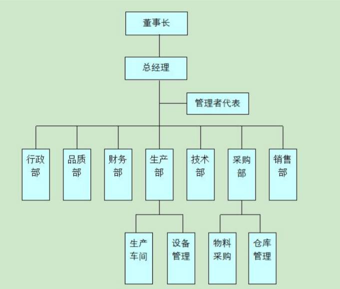 2.1 質(zhì)量管理機(jī)構(gòu) 公司總經(jīng)理親自主持以質(zhì)量為核心的經(jīng)營(yíng)戰(zhàn)略的調(diào)查、研討和制訂。公司副 總及管理者代表對(duì)本公司的產(chǎn)品質(zhì)量安全工作全面負(fù)責(zé),組織制定企業(yè)質(zhì)量發(fā)展 戰(zhàn)略、年度質(zhì)量工作計(jì)劃和質(zhì)量安全保障措施;建立并實(shí)施先進(jìn)質(zhì)量管理體系和 管理方法;組織實(shí)施質(zhì)量改進(jìn)、質(zhì)量攻關(guān)等群眾性質(zhì)量活動(dòng);配備相應(yīng)人員并規(guī) 定其職責(zé)、權(quán)限和相互關(guān)系,確保質(zhì)量管理體系得到建立和保持,并推動(dòng)持續(xù)改 進(jìn)。 質(zhì)量管理組織機(jī)構(gòu)圖如下: